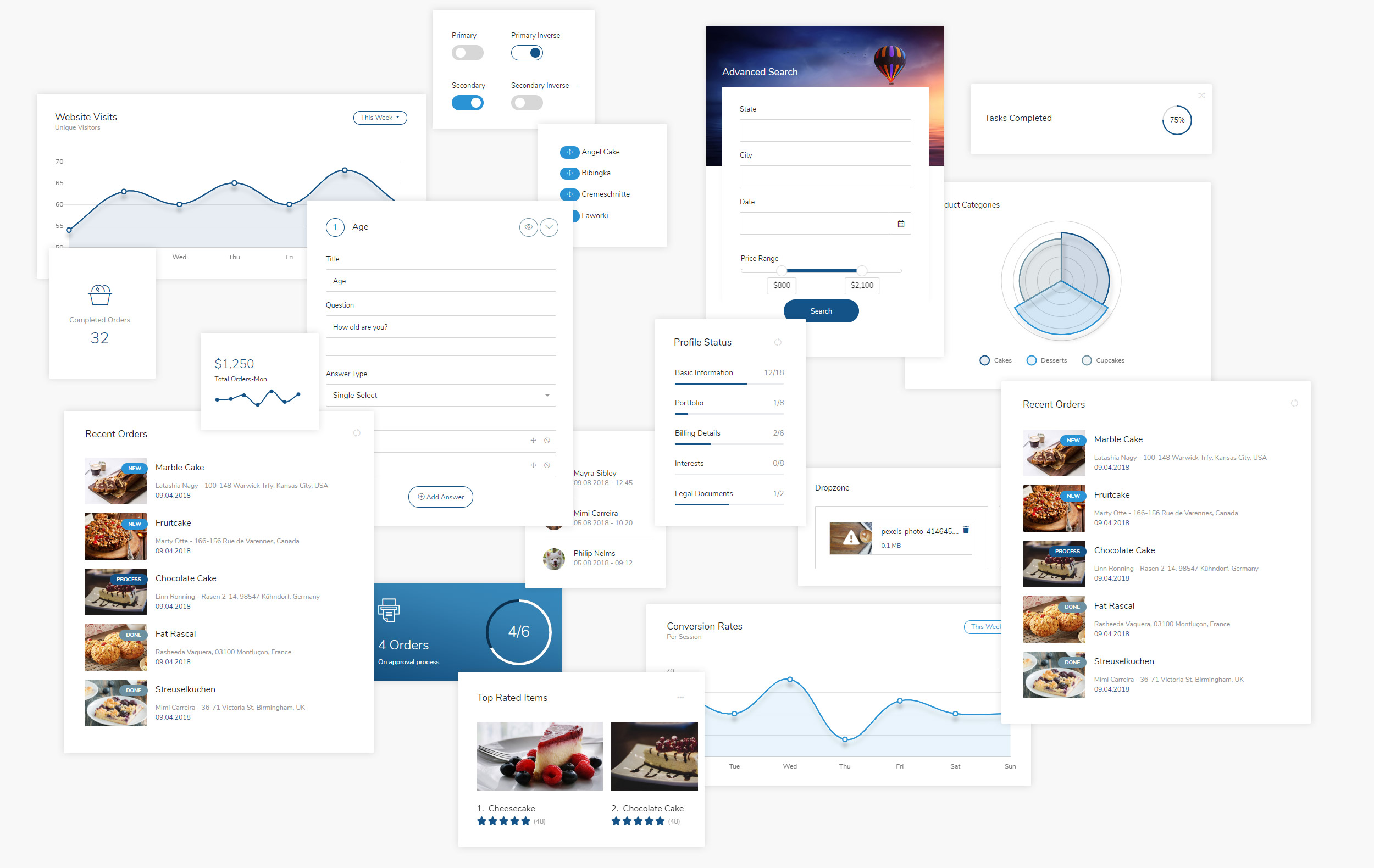 From carousels to charts, switches to list we tried to provide components that we like to use on our